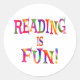 Share your love for reading and books with this colourful design and the words Reading is Fun!