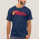 I give wanted to give this a 4 instead of a 5 because these Basic DARK T0shirts run unexpectedly SLIM or Narrow. Which is great if you do not have a potbelly, but I have a paunch. It isn't the shirt's fault that I've got a beer belly. The design and shirt itself is a quality cotton shirt. The color is more of a deep purple, but still a very pretty color. The Basic DARK T-shirts run a bit SLIMMER than the Basic Ts. The neck is a fraction narrower (or seems to be narrower) also. I'm a paunchy middle-aged woman and my neck is 12 inches (31cm) thick and the neckline fell about the same as in the photo of the man, and I had the desire to tug it a bit. So if you're a thick necked man or like loose shirts, be aware these are slimmer shirts. Once I get rid of my lockdown paunch it'll look great. The shirt washed well in cold water with no apparent bleeding. We don't have a dryer, so it hung dry. Did not shrink. Love the colors and the design. The design looks smaller on my shirt than it does on the model on-line. But still, it looks good on the shirt. The printing looks as it does on the model, just the size seems fractionally smaller. Washed garment in cold water, hung dry and design appeared unaffected.