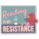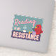 “Reading Is My Resistance” rectangle sticker features a bold red cardinal lounging with a good book, a warm blanket, a hot drink, and a towering TBR pile. Part of the Cardinal of Resistance series, this purple, mid-century–inspired illustration celebrates the quiet power of reading. A thoughtful gift for readers, writers, librarians, teachers, and book lovers who believe stories open the world. Perfect for laptops, water bottles, journals, e-readers, book carts, and cozy reading nooks.