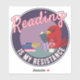 “Reading Is My Resistance” round badge-style sticker features a bold red cardinal lounging with a good book, a warm blanket, a hot drink, and a towering TBR pile. Part of the Cardinal of Resistance series, this purple, mid-century–inspired illustration celebrates the quiet power of reading. A thoughtful gift for readers, writers, librarians, teachers, and book lovers who believe stories open the world. Perfect for laptops, water bottles, journals, e-readers, book carts, and cosy reading nooks.
