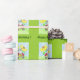 A kid green birthday wrapping paper with the tile illustration of a ladybug reading a book under two yellow flowers and the words "Happy Birthday" written beneath it . Perfect for a spring birthday :) © ArianeC Illustrations