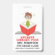 School teacher's student library hall pass badge done in white with cartoon graphics of a boy reading a book. Personalise the text fields to read what you want.