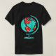 I give wanted to give this a 4 instead of a 5 because these Basic DARK T0shirts run unexpectedly SLIM or Narrow. Which is great if you do not have a potbelly, but I have a paunch. It isn't the shirt's fault that I've got a beer belly. The design and shirt itself is a quality cotton shirt. The color is more of a deep purple, but still a very pretty color. The Basic DARK T-shirts run a bit SLIMMER than the Basic Ts. The neck is a fraction narrower (or seems to be narrower) also. I'm a paunchy middle-aged woman and my neck is 12 inches (31cm) thick and the neckline fell about the same as in the photo of the man, and I had the desire to tug it a bit. So if you're a thick necked man or like loose shirts, be aware these are slimmer shirts. Once I get rid of my lockdown paunch it'll look great. The shirt washed well in cold water with no apparent bleeding. We don't have a dryer, so it hung dry. Did not shrink. Love the colors and the design. The design looks smaller on my shirt than it does on the model on-line. But still, it looks good on the shirt. The printing looks as it does on the model, just the size seems fractionally smaller. Washed garment in cold water, hung dry and design appeared unaffected.