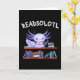 Lovely design featuring a cute axolotl sitting on a bookshelf and the quote "Readsolotl". Good for the young and the old.