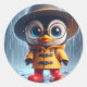 A cheerful sticker featuring a determined penguin sporting a raincoat, hat, and boots, ready to conquer the rainy day.