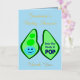 This awesome Baby Shower Foil Thank You card features a graphic image of a green Pea pod containing 2 green peas and a big blue pea. The large blue pea has a cute little face with eyes and a mouth. On the other side of the pea pod in darker pink text it says "Baby Boy Ready to Pop". There is custom text on the front and inside the card so you can personalise this card. The text on the front is in beautiful golden foil.