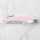 This awesome corkscrew features a graphic image of a green Pea pod containing 2 green peas and a big pink pea. The large pink pea has a cute little face with eyes and a mouth. On the other side of the pea pod in darker pink text it says "Baby Girl Ready to Pop".