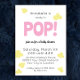 This custom baby shower invitation for a little girl features a cute popcorn theme. Cute cartoon popcorn kernels accent the sides and bottom of the invitation. The word "POP" is printed in a soft baby pink colour for those expecting a girl. The back is a matching pink.