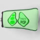 This awesome golf putter cover features a graphic image of a green Pea pod containing 3 green peas. The largest pea has a cute little face with eyes and a mouth. On the other side of the pea pod in darker green text it says "Ready to Pop".