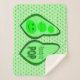 This awesome sherpa fleece blanket features a graphic image of a green Pea pod containing 3 green peas. The largest pea has a cute little face with eyes and a mouth. On the other side of the pea pod in darker green text it says "Ready to Pop".