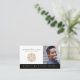 Professional realtor business cards in classic black and white with your name, title, company name, photo, and logo. On the back, fill in your name, phone number, and the location of your real estate office.