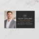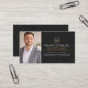 Black and gold photo business card designed for real estate agents seeking a bold, luxury presence. Sleek layout showcases your professional photo, name, and contact details with an upscale gold accent aesthetic. Ideal for open houses, property showings, listing appointments, and client networking. Editable text and photo. Clean print-ready layout.