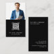 This black and white real estate business card offers a clean and modern layout made for professional agents. The front features a photo, name, title, and a QR code for quick access to your website or listings. The back includes customizable contact information and an address. The minimalist black design creates a strong and polished look that helps you stand out.