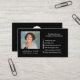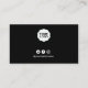 Simple real estate agent business card in black, with icons for business details and social media profiles, add logo and your picture to customise.