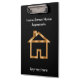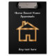 Custom acrylic business clipboard designed for a real estate appraiser or appraisal service or anyone in the real estate industry. Includes a classy gold looking house symbol on and text you can customise on both sides of the clipboard.
