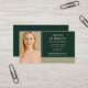 Green and gold photo business card designed for real estate brokers who want a refined, upscale, and confident brand presence. Features a photo-forward layout paired with rich green tones and elegant gold accents to convey trust, leadership, and premium service. Ideal for broker owners, managing brokers, client consultations, luxury listings, networking, and referrals. Fully editable text and photo with a clean, print-ready layout.