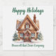 This cute custom realtor Christmas champagne label has your personalised realty company name and Happy Holidays message in chic green typography along with a beautiful image of a house in the winter surrounded by pine trees. Professional holiday gifts for real estate business marketing.