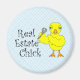Real estate chick text with a cute yellow chick holding a key is a humourous gift design for real estate agents and brokers at birthdays and holidays.