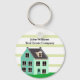 Cute custom real estate company keychain for a realtor to give to homebuyer clients. Use these modern green home gifts as a marketing tool to remind customers that you are ready to help them look for a new house. Customize the text with your own realty business information.