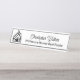This professional realtor desk name plate is custom made with your real estate company name under the modern cursive script for an open house. This chic minimalist white and black realty business office decor features a house logo image that can be replaced with your own for a home builder or realty agent.