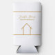 This modern realtor seltzer can cooler is custom made with your realty company name under the the agent name in chic gold typography. This cool marketing gift features a simple line drawing of a house. Contemporary realty swag to send to a potential homebuyer or client who is listing their home.
