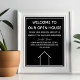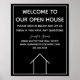 A modern real estate open house welcome poster in minimalist black and white. Customize this realty agent signage with your custom realtor information and details above the simple line drawing of a home and use this to advertise your open house.