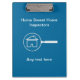 Real estate home inspection acrylic clipboards with image of a magnifying glass that has a house symbol, blue background colour you can change and text you can customise on both sides. Designed for a real estate appraiser or inspector service or anyone in the real estate industry.