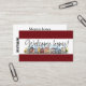 This eye-catching business card is designed to make a memorable first impression for real estate professionals who want their brand to feel warm, welcoming, and approachable. The front features a bold burgandy background that instantly draws attention and conveys optimism and confidence. Running through the centre is a horizontal stripe showcasing a watercolor illustration of a colourful neighbourhood of homes, symbolising community, possibility, and new beginnings.