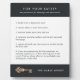 Reopening your real estate business in the covid-19 era? Keep your buyers and sellers safe with this beautifully designed plaque that's perfect for displaying at open houses and showings. Customise the wording to suit your needs and your area's guidance on public health and safety. Shown with basic guidance to maintain a safer environment during common real estate encounters, including wearing a mask and shoe covers, sanitising hands, minimising touching of sellers' belongings, and instructions to reschedule if feeling ill. Personalise with your business name along the bottom alongside a vintage skeleton key illustration in faux copper foil.