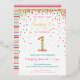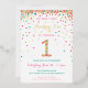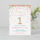 Celebrate your one year old's birthday with REAL gold foil in these colourful pink, mint and teal confetti 1st birthday invitations! Featuring your kiddo's party details and a "1" in confetti. This adorable design is super cute and girly.