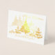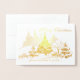 Real Foil Christmas Goats in a winter setting in a grove of pine trees with the decorated Christmas tree in the centre. Dairy goats standing in the snow gives a serene feeling of Peace - Front Greeting and Inside message is completely customisable