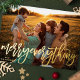 REAL GOLD FOIL Merry Everything Christmas Holiday Photo Card. Funky script lettering with a soft floral backer. A holiday card with a general message to suit every customer!
