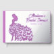 Real Foil Elegant Bride Bridal Shower Silver Wedding Guest Book features an elegant modern silver foil background with an elegant bride with a butterfly dress with your custom text on a purple background. Add your custom text on the spine of the guest book. Created by Evco Studio. www.zazzle.com/store/evcostudio