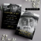 Elegant celebration of life invitation with real foil detail offers a refined and heartfelt way to honor the memory of a loved one. The front of this customizable memorial card features a full-photo layout with the real gold, silver, or rose gold foil word “celebrating,” and your loved one's name, adding a luxurious and luminous touch that draws attention to the tribute. The tasteful combination of classic serif and handwritten-style fonts gives the design both elegance and warmth. The back of the card continues with a black background and soft portrait, offering space for all the details of the event. Designed for a dignified celebration of life, funeral, or memorial service, this invitation blends emotional depth with visual sophistication. The high-end foil accents make it ideal for families seeking a timeless and respectful keepsake that captures the essence of a life well lived. Please note that only the front of the card features foil.