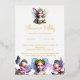 A 5x7 inch canvas of pure enchantment—its stark white background sparkling with real gold foil text (front side only) that you can personalise to weave your own fairytale. Adorned with vibrant, iridescent pixie fairies, each with glittering wings and glowing auras, this invitation beckons you into a realm where fairy dust floats gently and games of hide and seek are afoot.