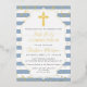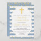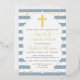 Real Foil Gold Dusty Blue Stripes First Communion Foil Invitation