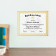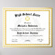 Celebrate a milestone moment with this premium replica high school diploma, exquisitely accented with real gold foil for an authentic and distinguished appearance. The diploma is a splendid tribute to academic success, capturing the essence of traditional achievement with its classic design. The central text proudly displays the graduate's name, in elegant, bold lettering, signifying the achievement of the individual. Each diploma is detailed with a gold foil seal, which adds to the genuine look and feel of the certificate. This beautiful document is not only a token of hard work and determination but also a keepsake that will be cherished for years to come. Whether it's to replace a lost diploma, a home school diploma, or a gift for family to showcase in a frame, this high-quality replica is an ideal way to honour the graduate’s high school journey and is perfect for displaying as decoration at high school graduation parties or in the graduate's home.