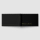 Real Foil Simple Modern Gold Script Wedding Guest Books features elegant modern gold script typography with your names and wedding date below on a black background. Add your custom text on the spine of the guest book. Created by Evco Studio www.zazzle.com/store/evcostudio