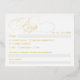 Chic and elegant script real gold foil and white script wedding rsvp with food choices, allergies, dietary requirements and song choice.