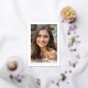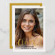 real gold foil Modern Class of 2023 script gold border photo invitation/announcement. It features a photo of the graduate and the text "Class of 2023 in real gold foil.