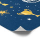 Wall art: A design reflecting Real Madrid's history by featuring small icons representing major championships. Golden trophies and stars are spread across a sophisticated blue background, with the logo subtly centred