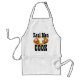 Real men cook on the barbecue and kitchen grill with this awesome funny and fun BBQ Apron. Khaki, white or yellow apron features grill utensils spatula, fork and chef's hat against a background of orange and red flames. Makes a great unique men's gift for husband or a special event.