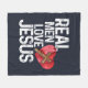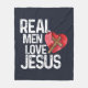 Real Men Love Jesus Heart Cross Fleece Blanket