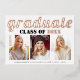 Class of 2026 graduate real rose gold foil typography graduation photo collage invitation with three photos. The black includes a rose gold and white pattern with polka dots and your text.