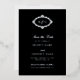 A beautiful real silver foil wedding save the date card with monogrammed initials in a traditional elegant wreath. A stunning black and silver wedding save the date card design with minimalistic classy typography. Traditional script typography and damask wreath create a timeless elegant silver foil wedding save the date card design.