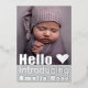 Introducing our elegant "hello" baby announcement postcard. A modern template that allows you to customise with 11 of your favourite photos of your new baby. On the front of this card there is space for one full close up image with real silver foil typography. On the reverse is space for 10 further photos. Customise with your own text and names to complete this elegant and sophisticated keepsake that your family and friends will treasure for years to come.
