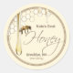 Realistic Bee and a few enticing drips of honey and honeycomb make this whimsical round label stand out from the rest. Matching Nutrition Facts label with honey drips available.