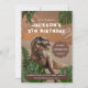 Realistic illustration of dinosaur in earth colours with green tropical leaves