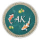 Realistic Green Japanese Koi Fish Pond name initial unique personalised design. This design has japanese koi fish in pond 3D realistic looking pond with lotus flowers. It is a customisable name monogram to add your initials. These asian exotic red and white fishes are believed to bring good luck. They are kept in an aquarium or waterfall indoors or ourdoors.