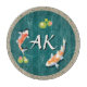 Realistic Green Japanese Koi Fish Pond name initial unique personalised design. This design has japanese koi fish in pond 3D realistic looking pond with lotus flowers. It is a customisable name monogram to add your initials. These asian exotic red and white fishes are believed to bring good luck. They are kept in an aquarium or waterfall indoors or ourdoors.